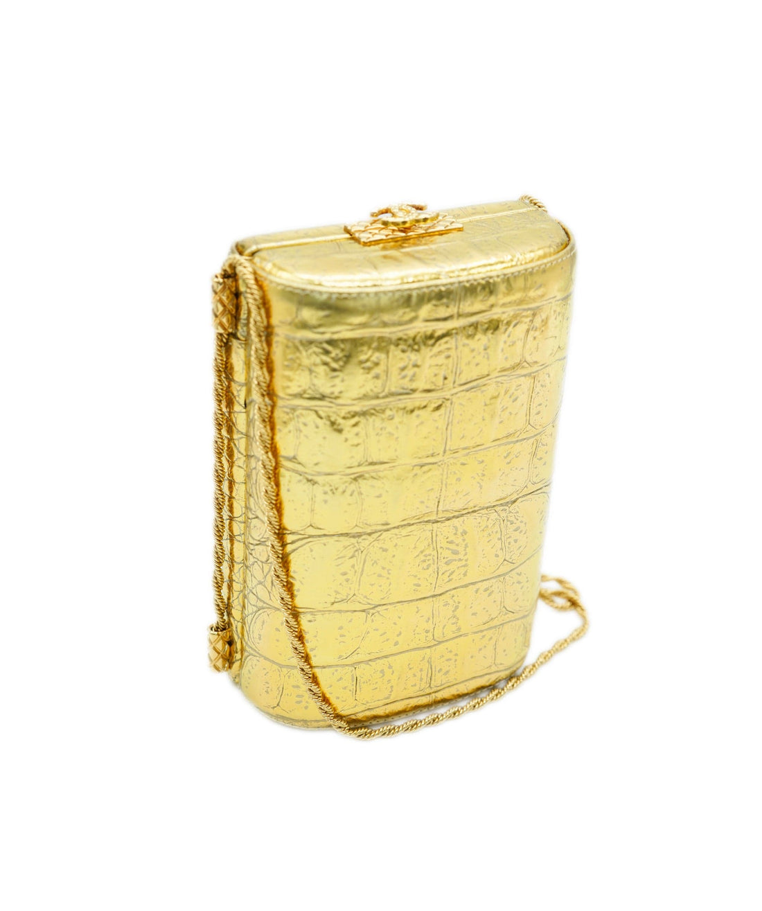 *COLLECTOR'S PIECE* CHANEL GOLD CROC EMBOSSED VANITY CASE BAG IN CALFSKIN LEATHER WITH GOLD HARDWARE DXBS2073