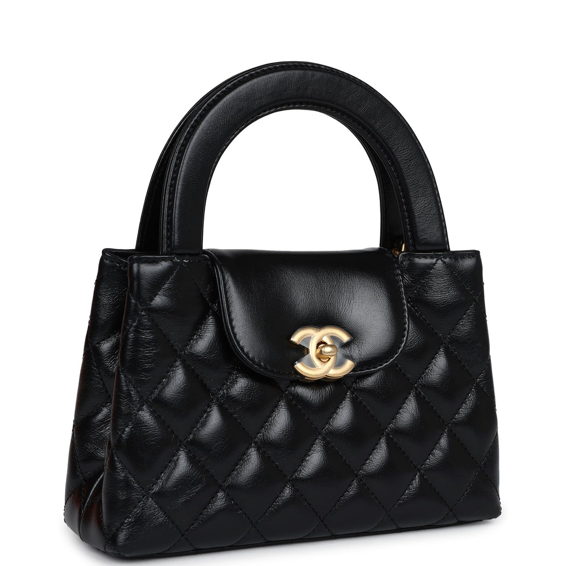 Chanel Small Kelly Shopper Black Shiny Aged Calfskin Brushed Gold Hardware