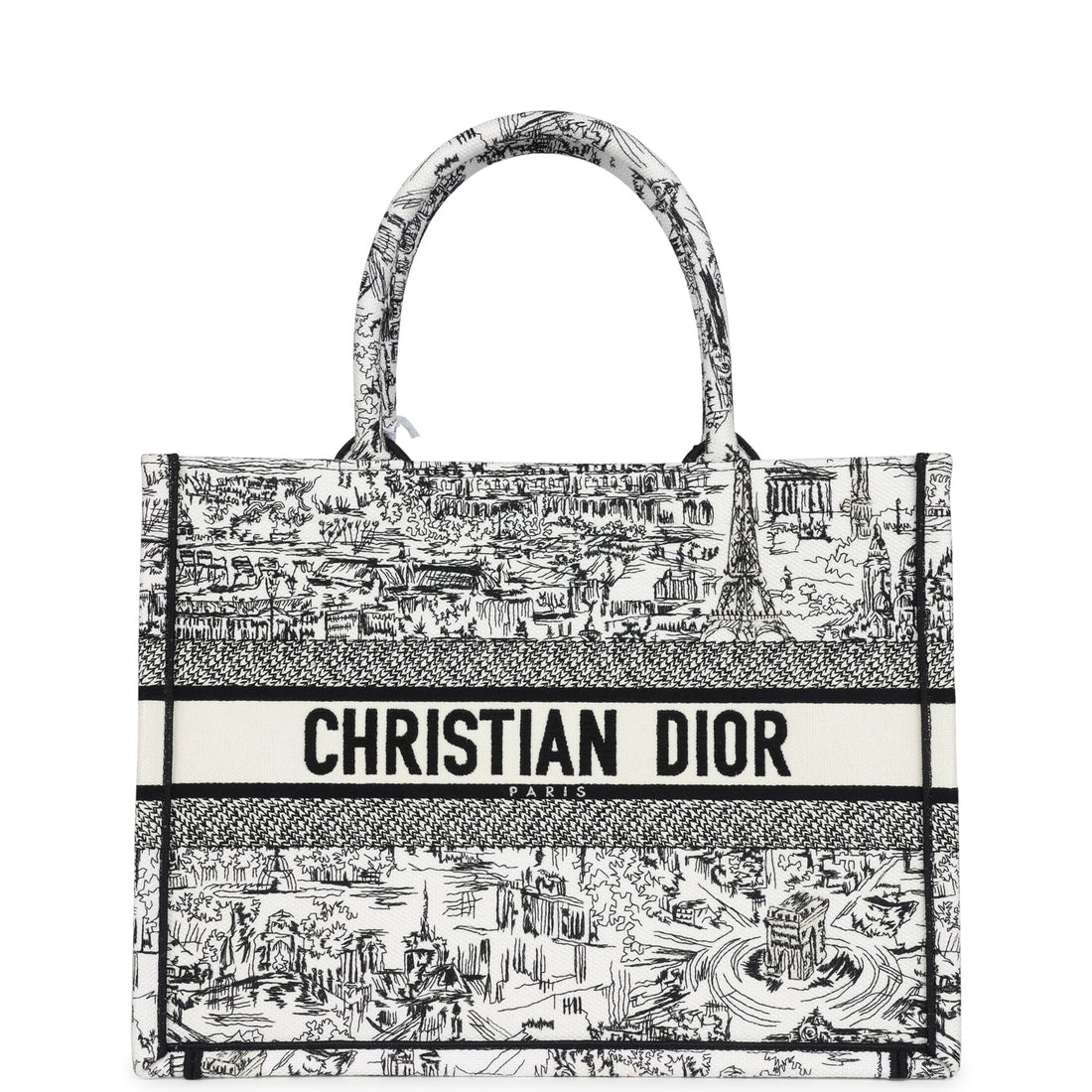 Christian Dior "Paris All Over" Book Tote Medium White and Black Embroidered Canvas