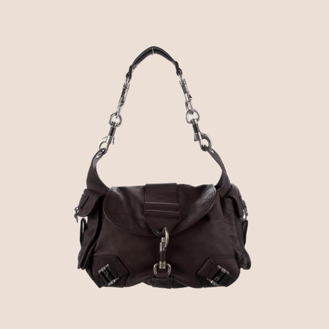 CHRISTIAN DIOR 2006 BLACK LEATHER REBELLE BAG