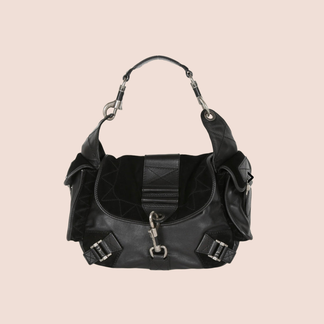 CHRISTIAN DIOR 2006 BLACK SUEDE REBELLE BAG