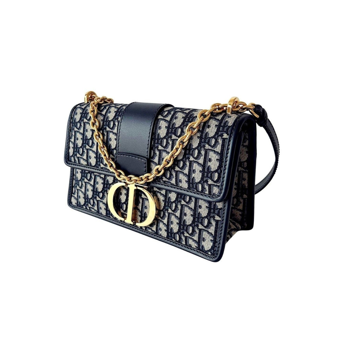 Christian Dior 2019 Blue Oblique Jacquard Mini Saddle Bag With Strap. Front fold-flap magnetic closure....