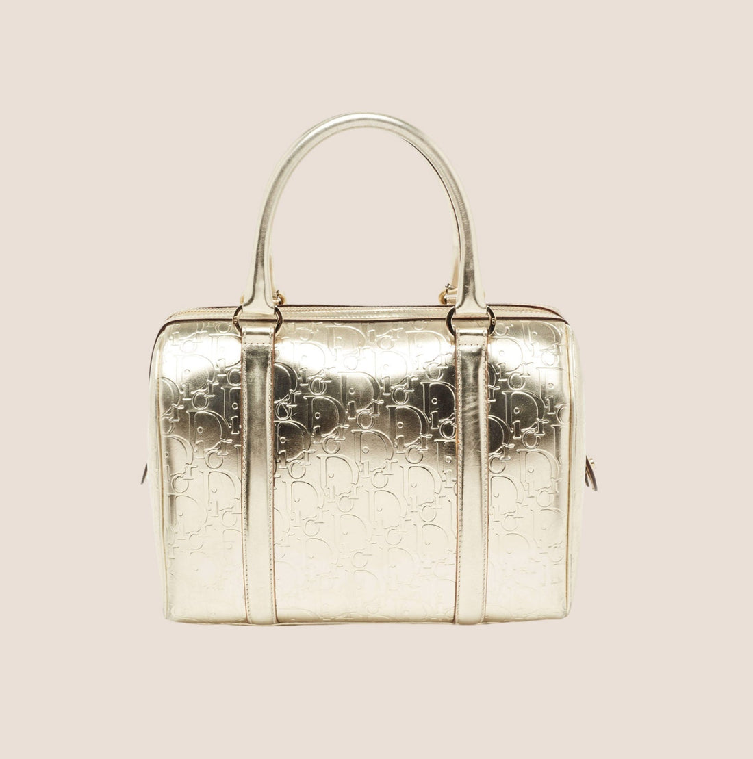 Vintage Christian Dior Metallic Gold Trotter Parent Leather Boston bag.