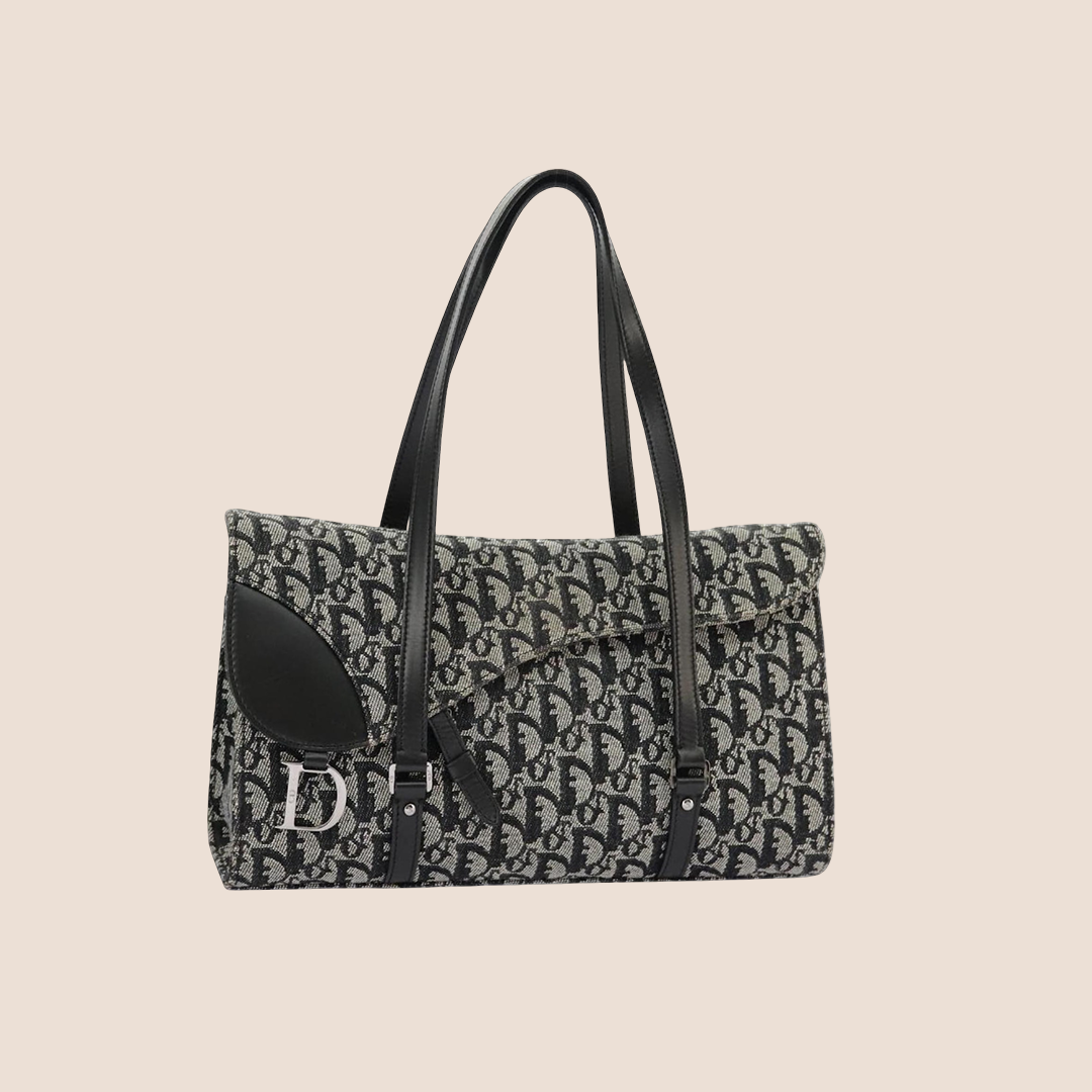CHRISTIAN DIOR GREY & BEIGE CANVAS OBLIQUE SADDLE BAG