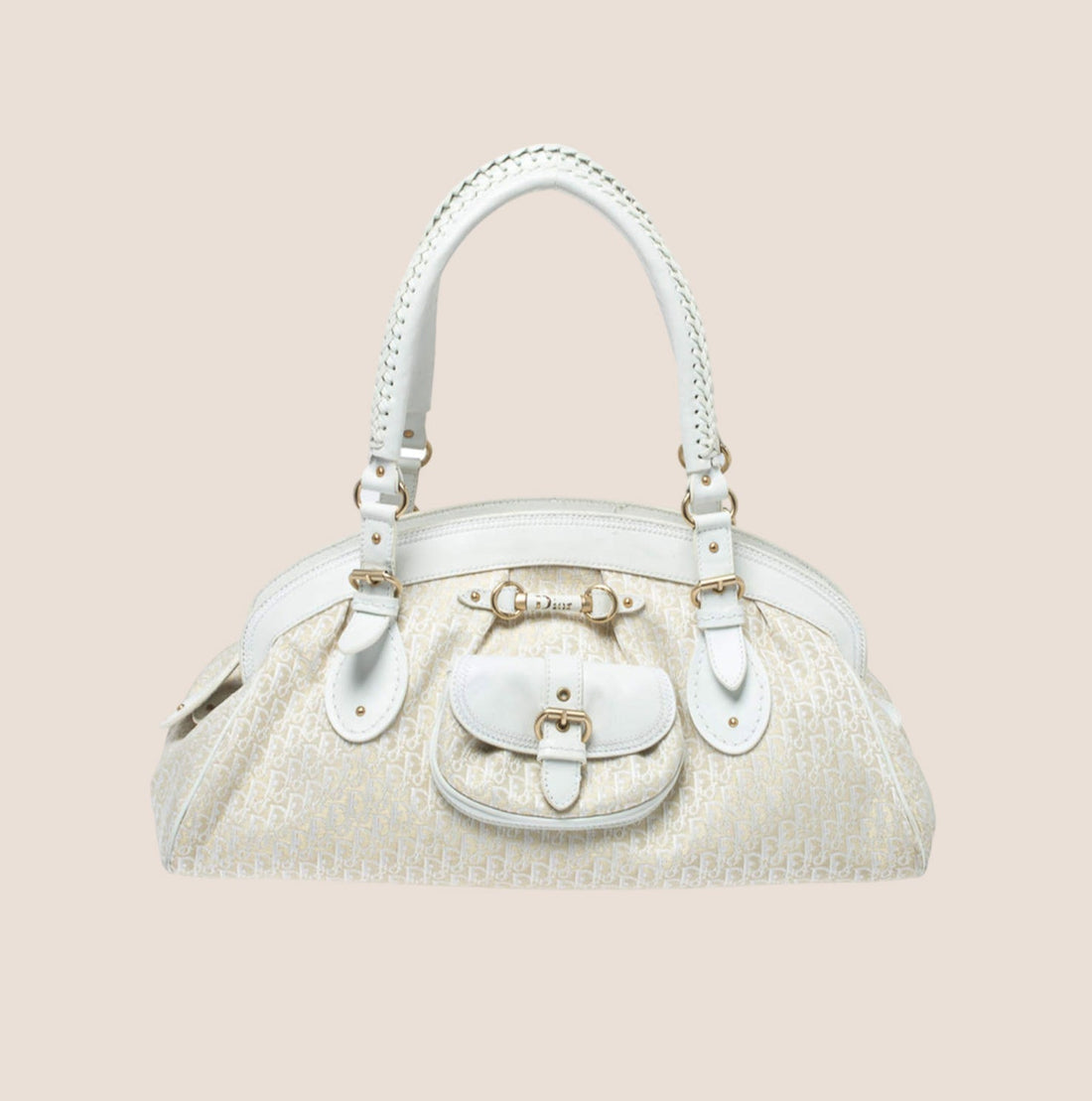 CHRISTIAN DIOR WHITE & BEIGE DIORISSIMO CANVAS SATCHEL