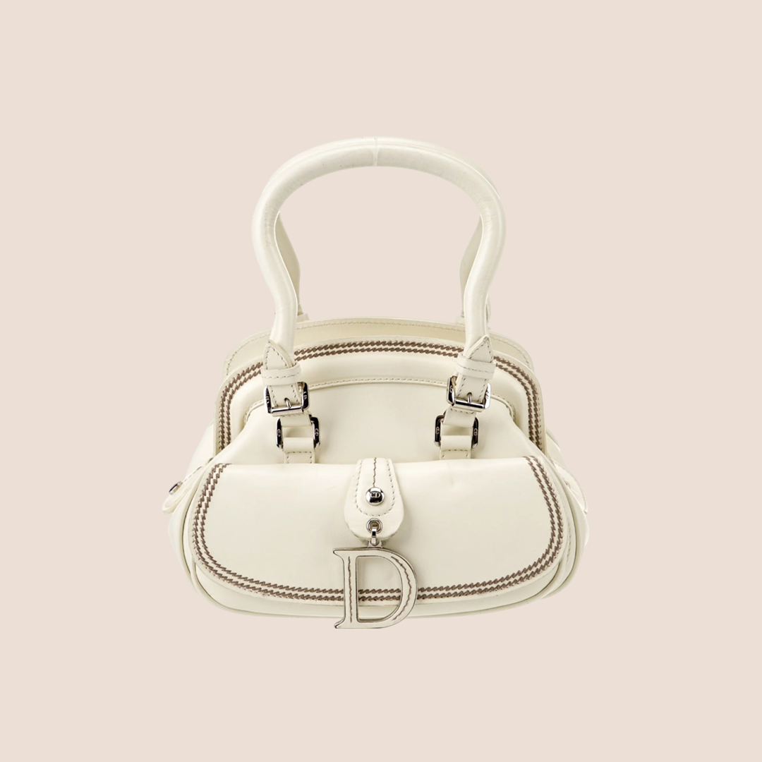 CHRISTIAN DIOR WHITE LEATHER HARCORE SHOULDER BAG