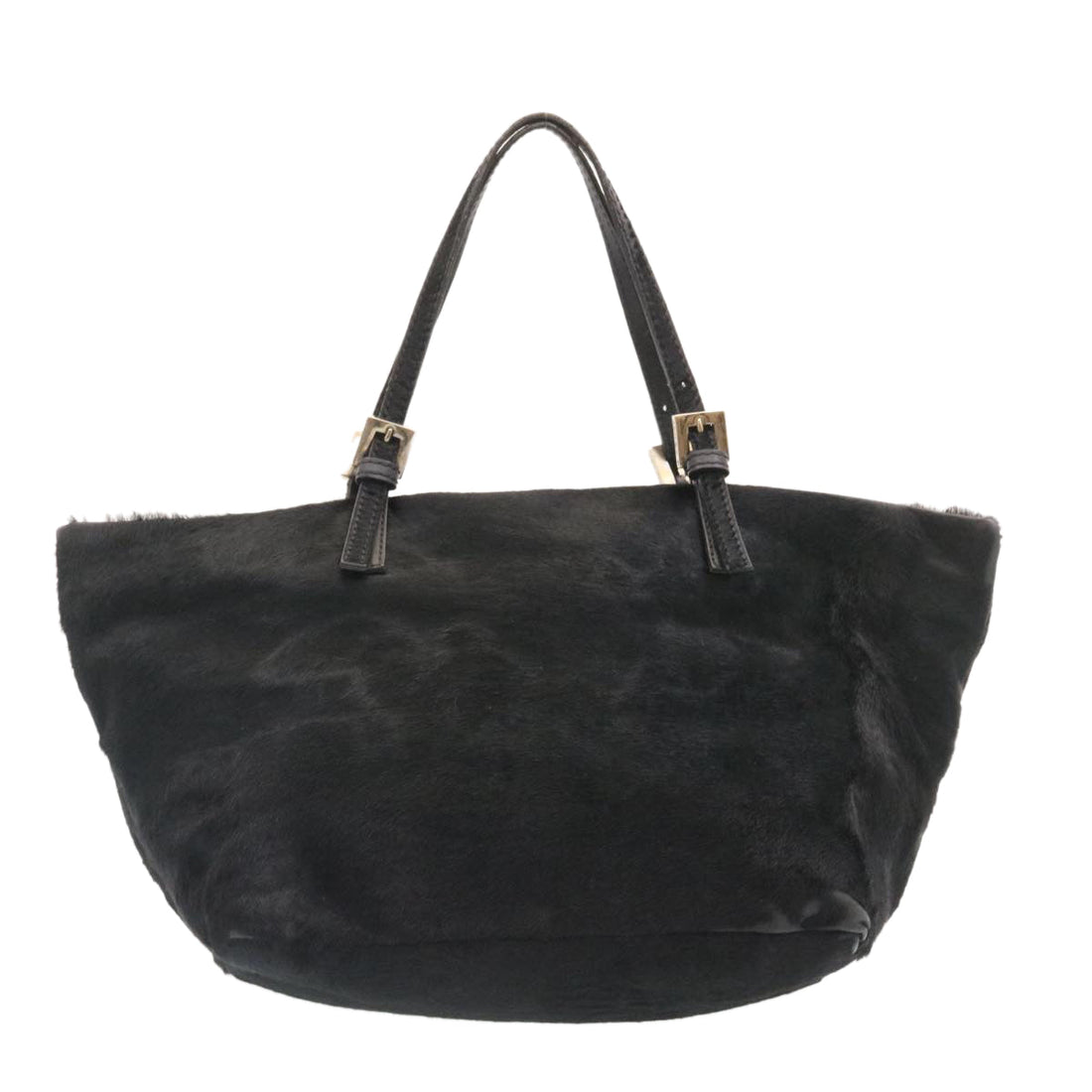 FENDI Hand Bag Unborn Calf SkinLeather Black Auth ar6571