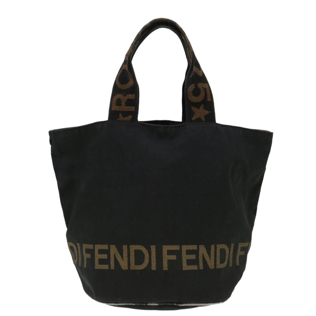 FENDI Hand Bag Nylon Black Brown Auth yb084