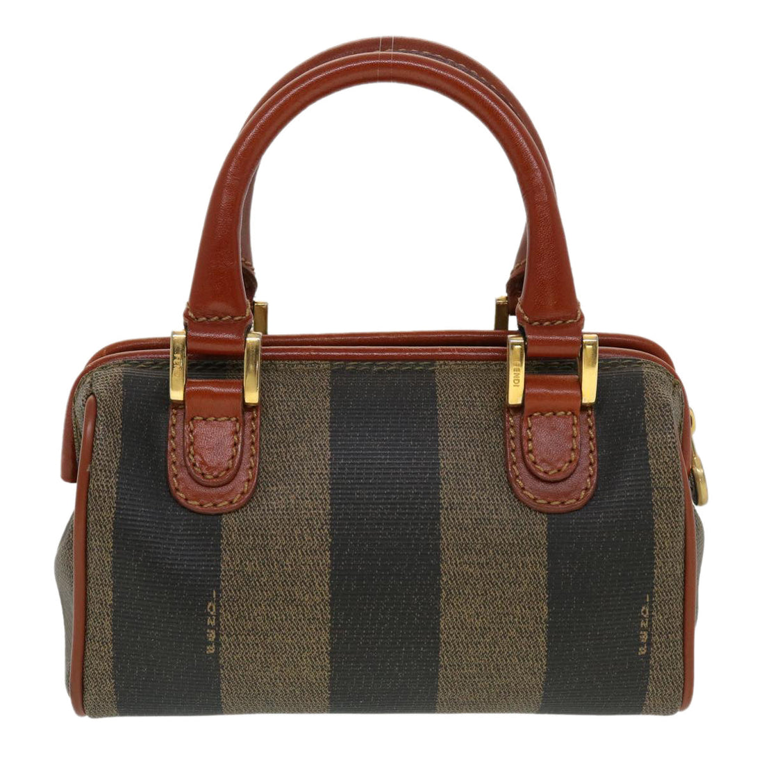 FENDI Pecan Canvas Mini Hand Bag Brown Black Auth am4474