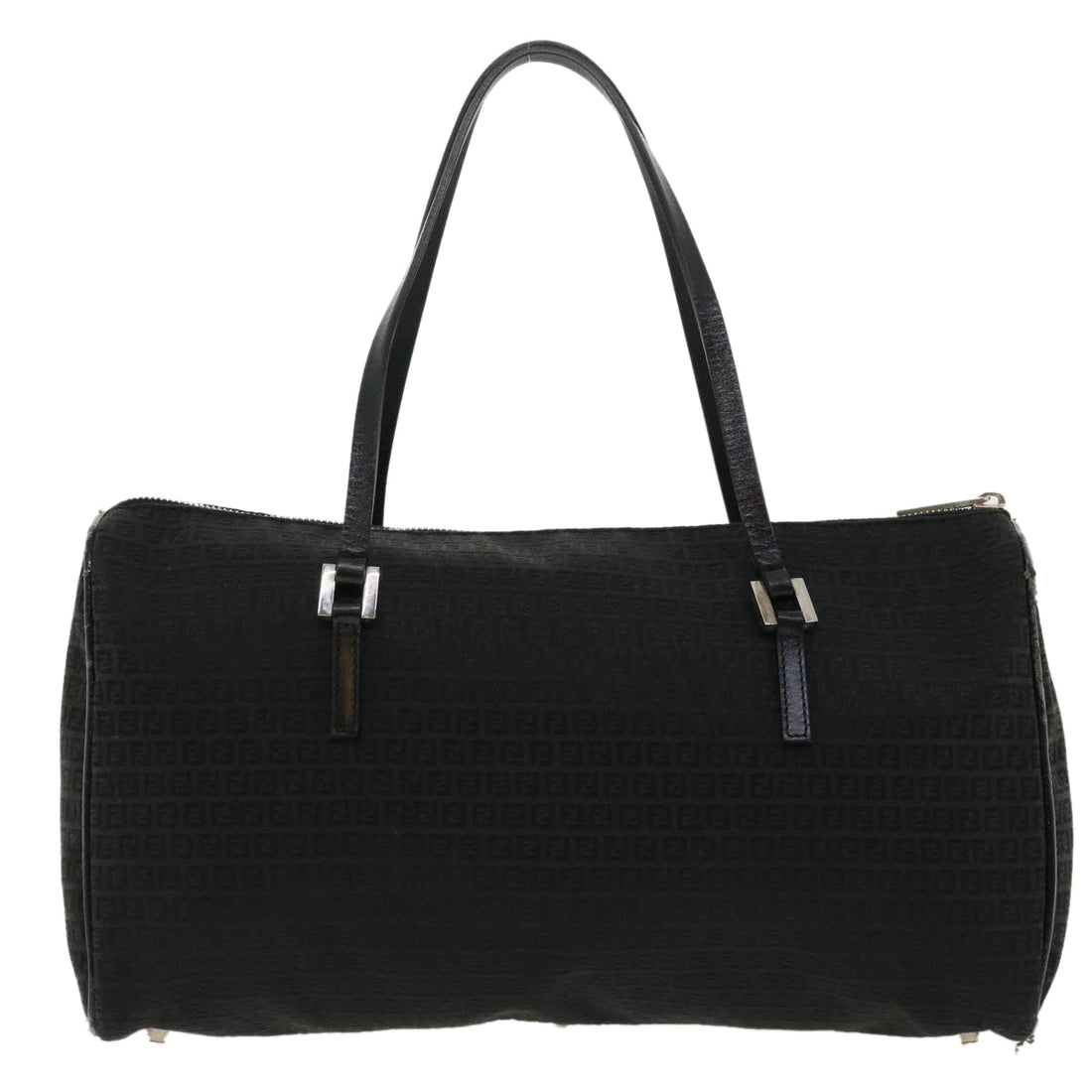FENDI Zucchino Canvas Hand Bag Black Auth ac1348