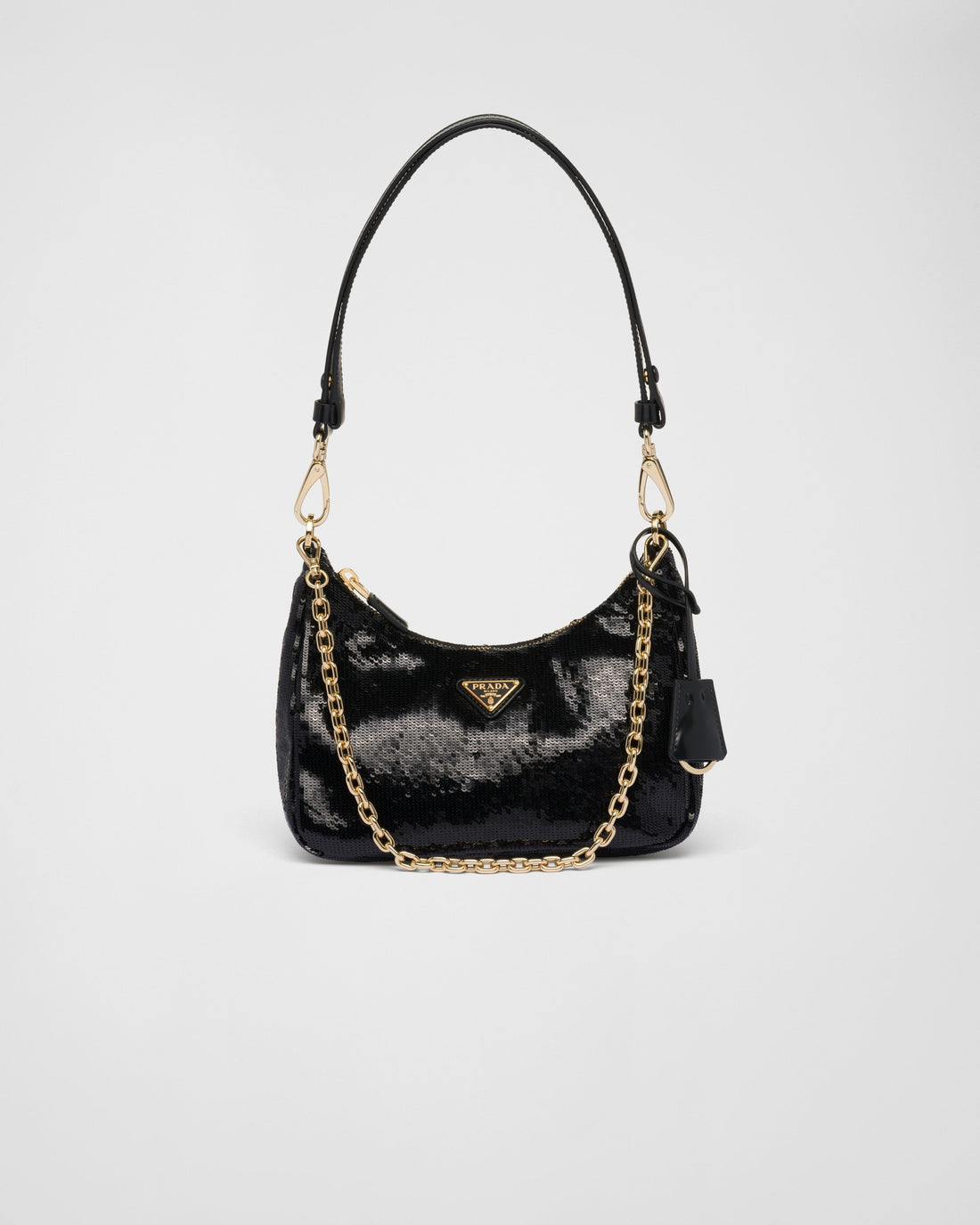 This Re-Nylon mini-bag with simple, harmonious lines is embellished with tonal sequins for a touch...