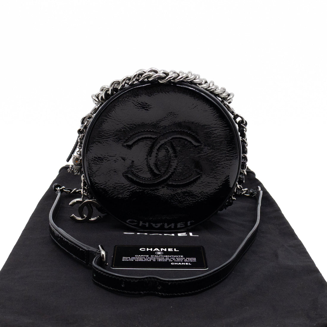 A rare Chanel Round As Earth Bag. This round bag is crafted of patent leather...