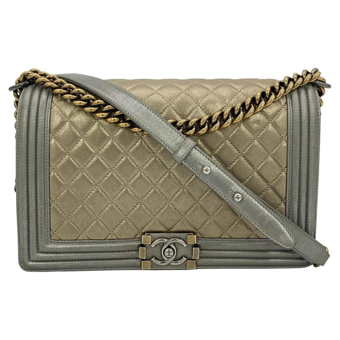 Top Quality Chanel Gold Silver Leather Medium Boy Bag Classic New