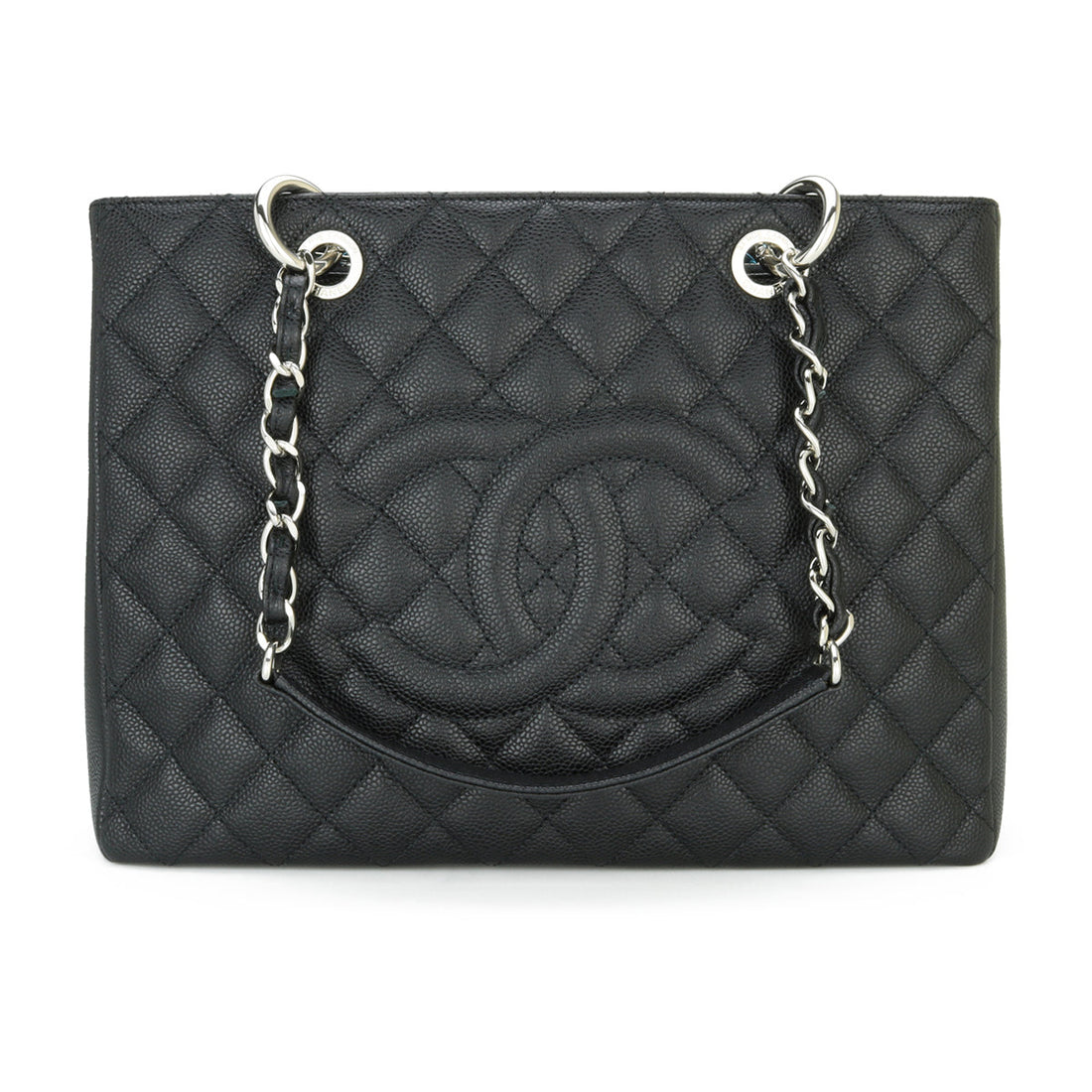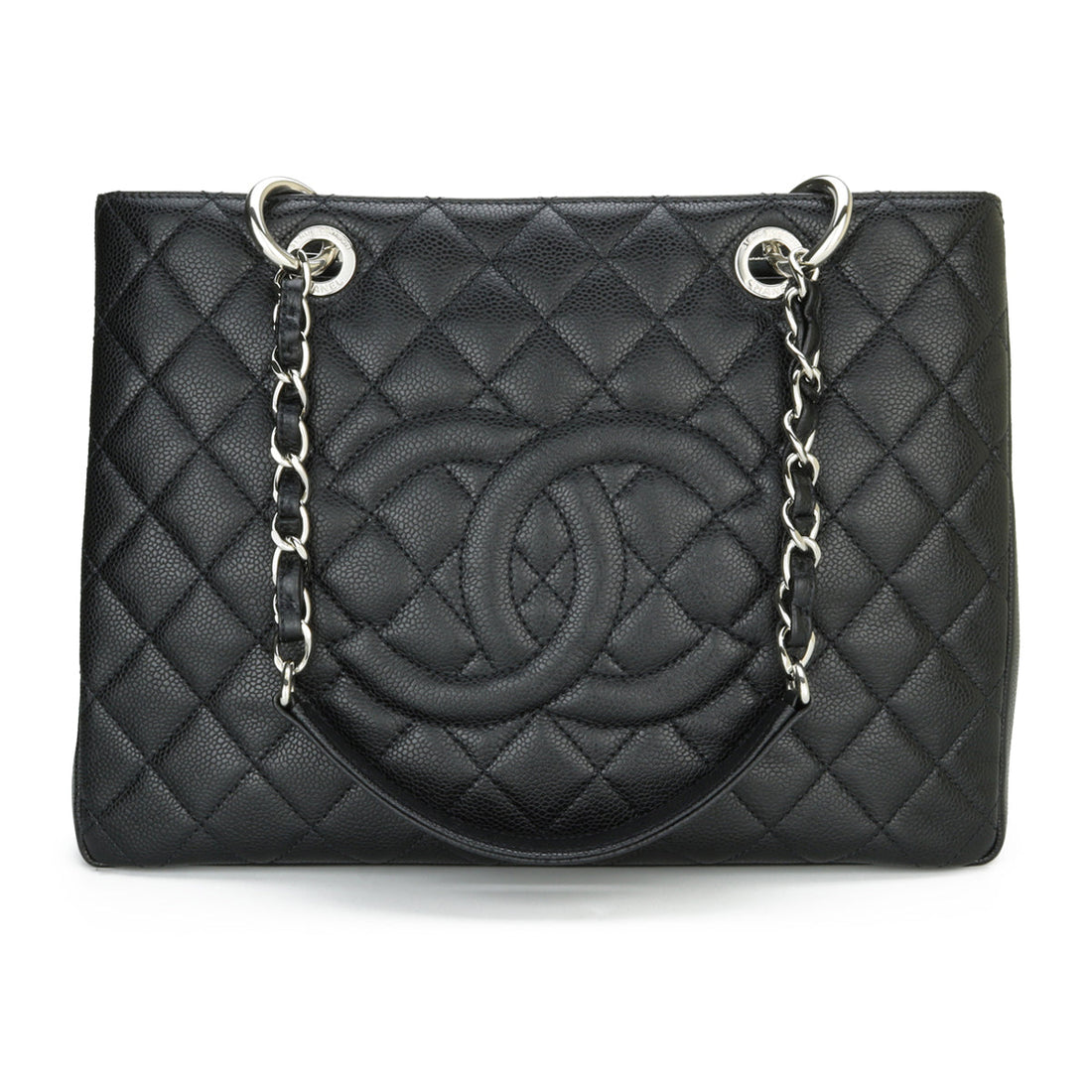 CHANEL Grand Shopping Tote (GST) Black Caviar with Silver Hardware 2015.This bag is in pristine...