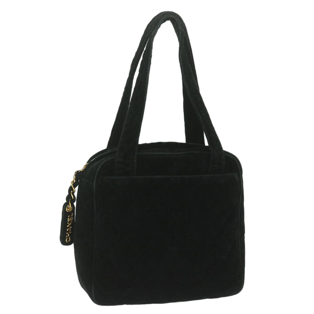 Top Quality Chanel Hand Bag Velor Black CC Auth bs10697