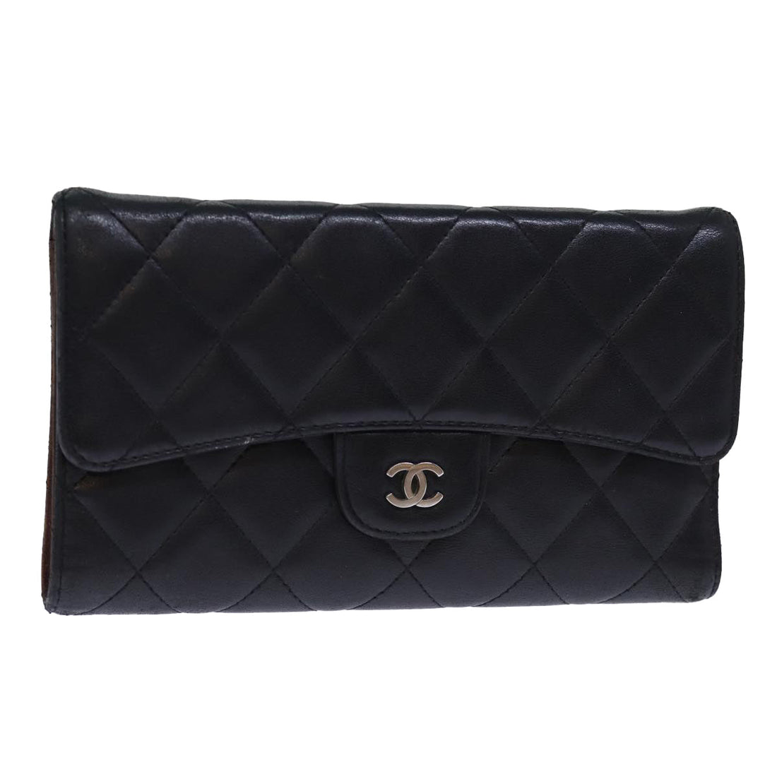 CHANEL Matelasse Long Wallet Lamb Skin Black CC Auth yk12499BRAND : CHANEL Color : Black...