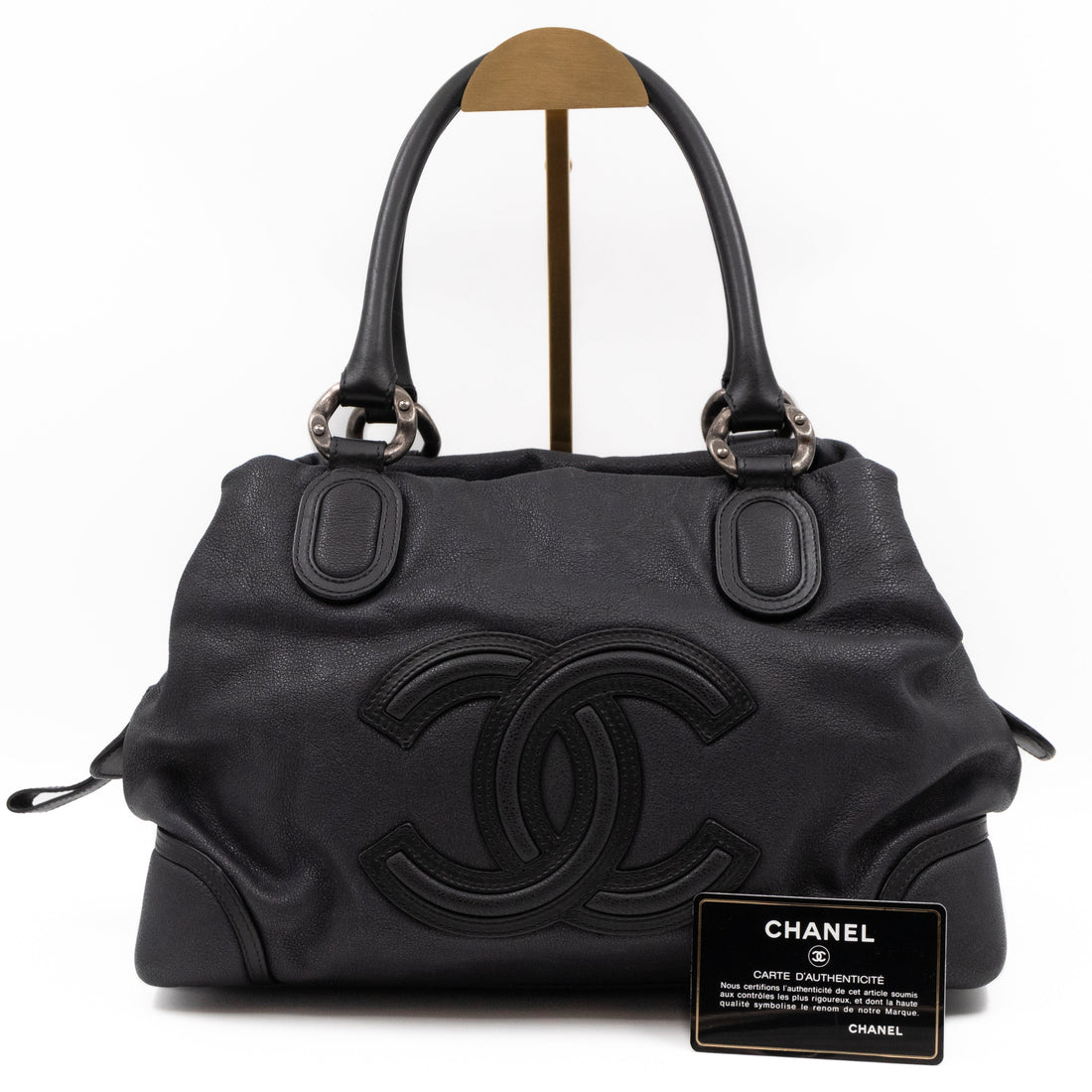 This is a Chanel Bowling hand bag. This soft hand bag is made with black...