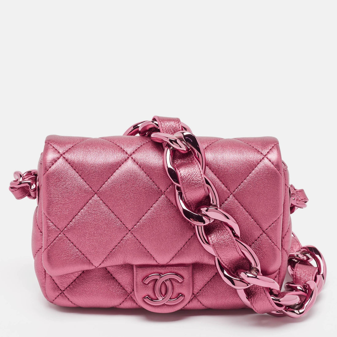 CHANEL Metallic Pink Quilted Leather Mini New BagDesigner bags are ideal companions for ample occasions...