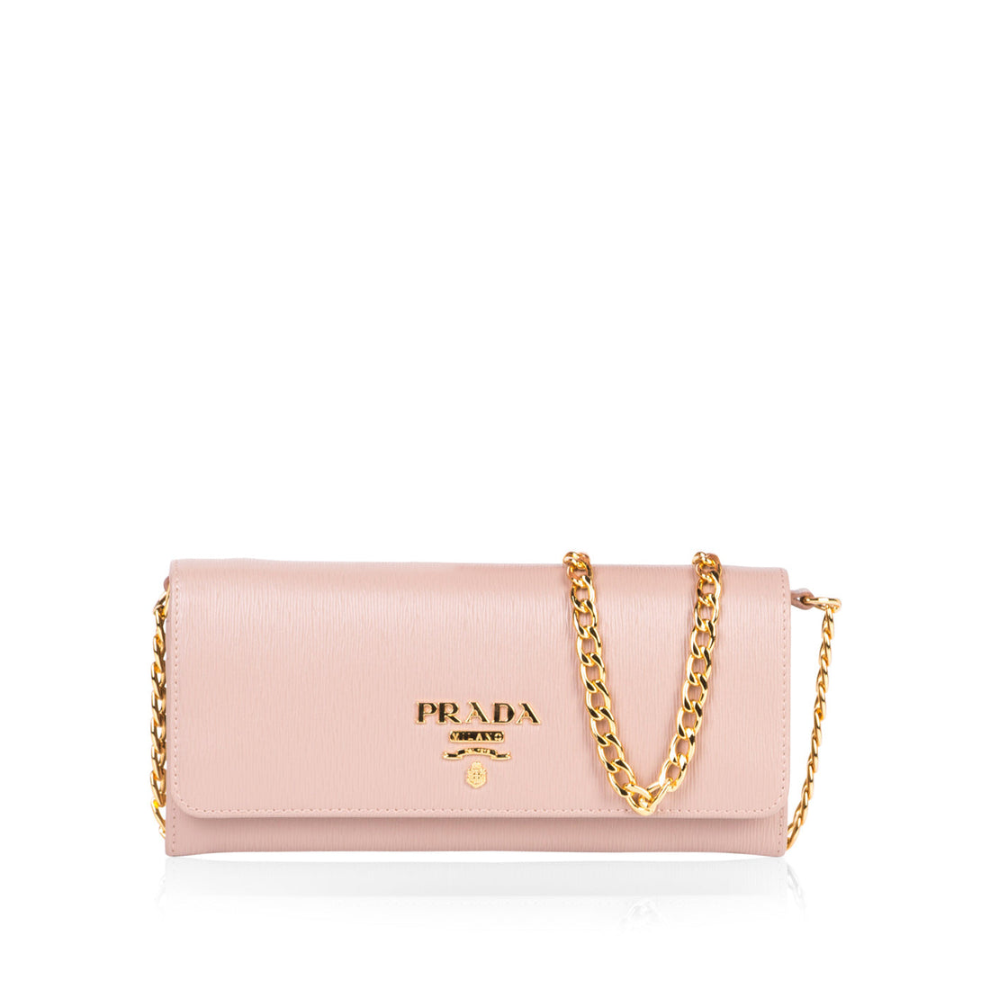 Carefully crafted from romantic, burgundy velvet, Prada presents this stunning pouch with gold tone hardware...