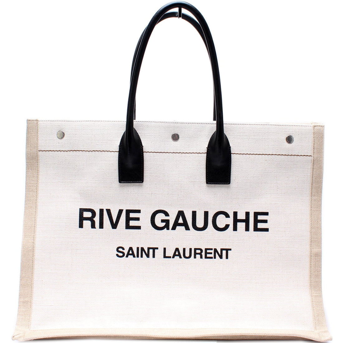 Saint Laurent Rive Gauche Large Beige And Dark Brown Canvas Tote Bag