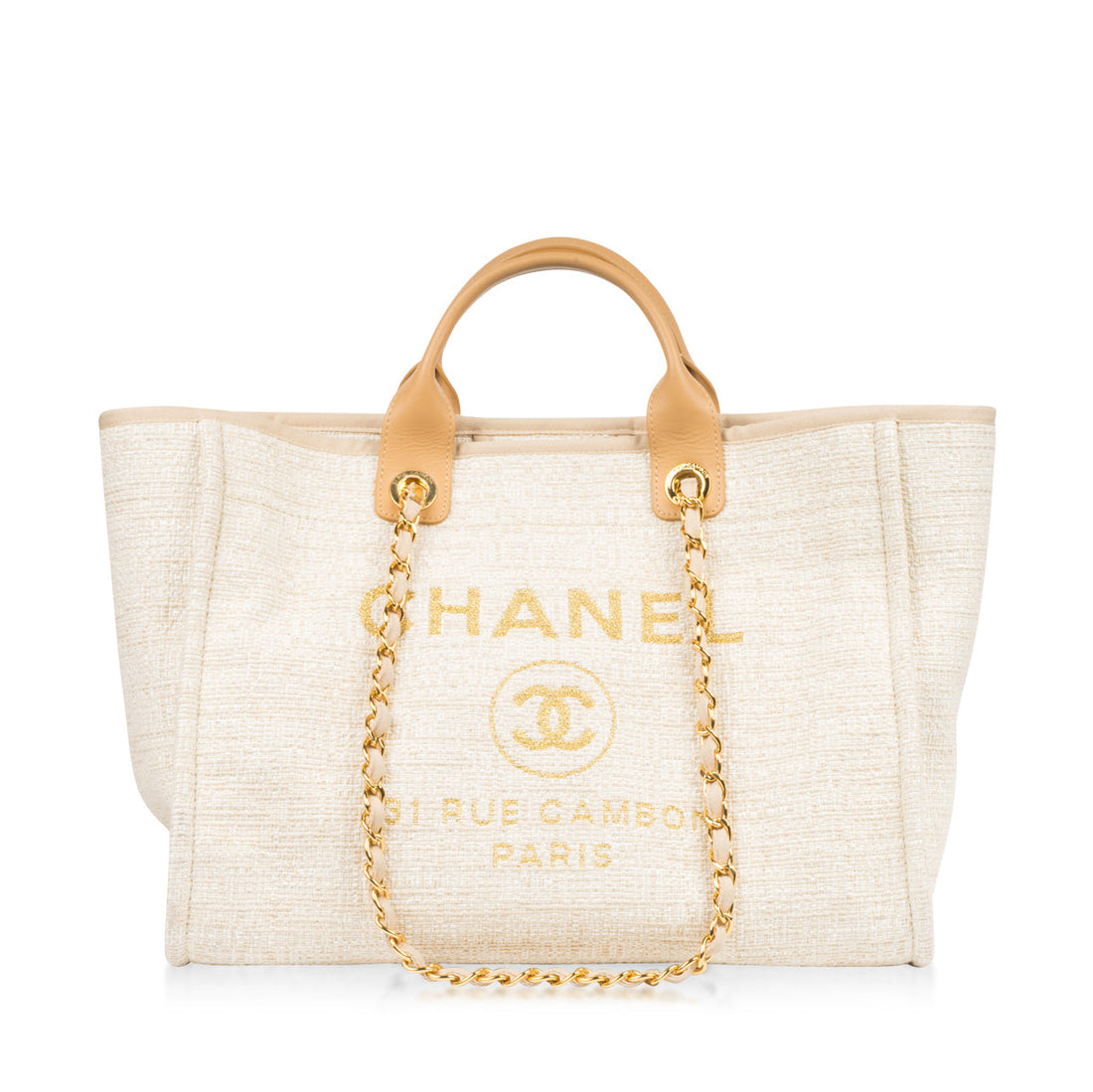 Chanel's interpretation of the perfect shopping tote. The Deauville comes in various finishes from leather, to...
