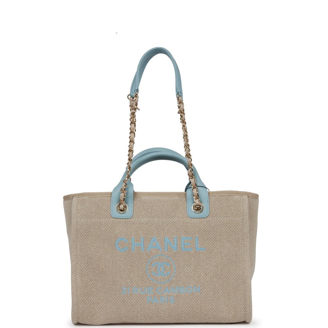 Chanel Small Deauville Shopping Tote Blue and Beige Boucle Light Gold Hardware