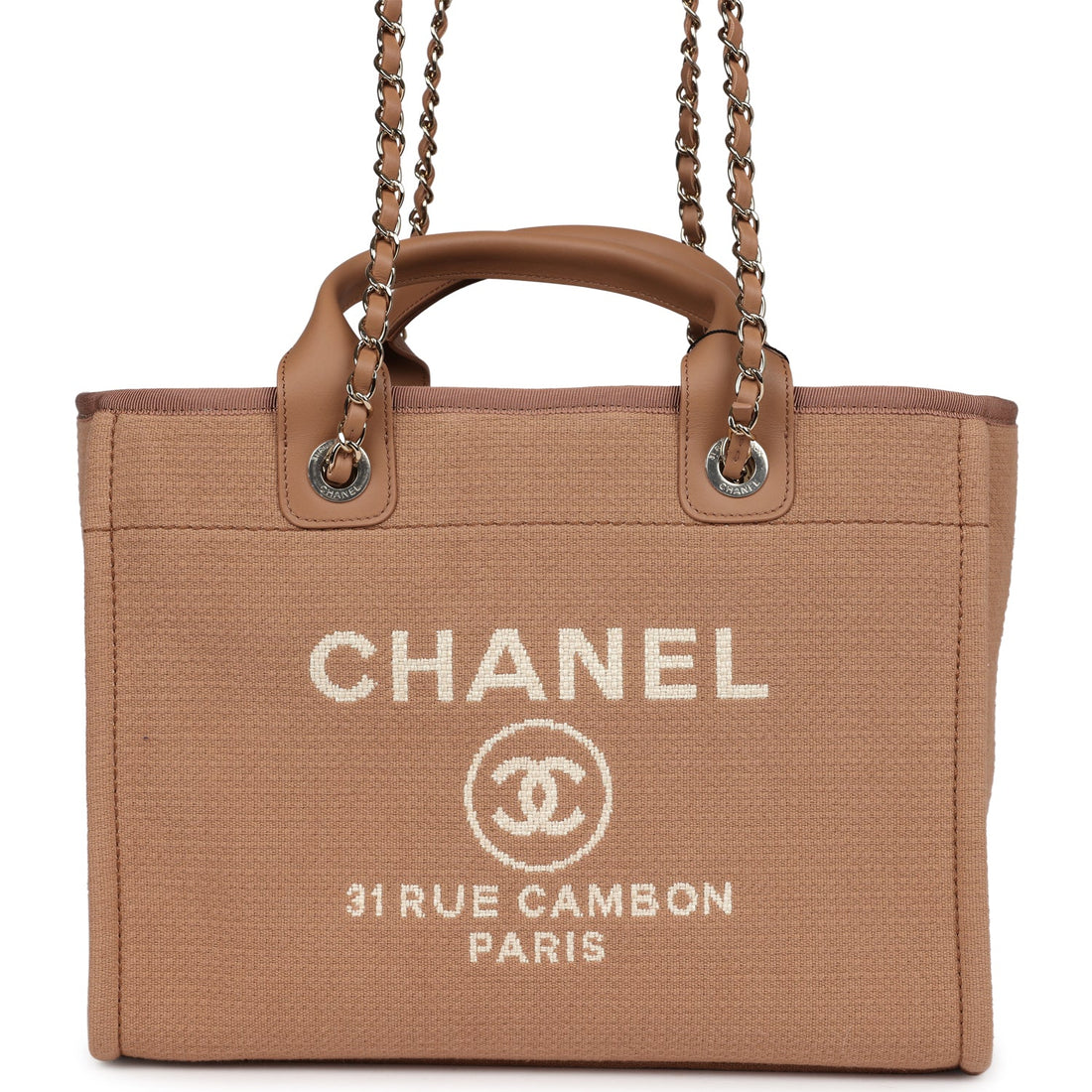 Chanel Small Deauville Shopping Tote Dark Beige Canvas Light Gold Hardware