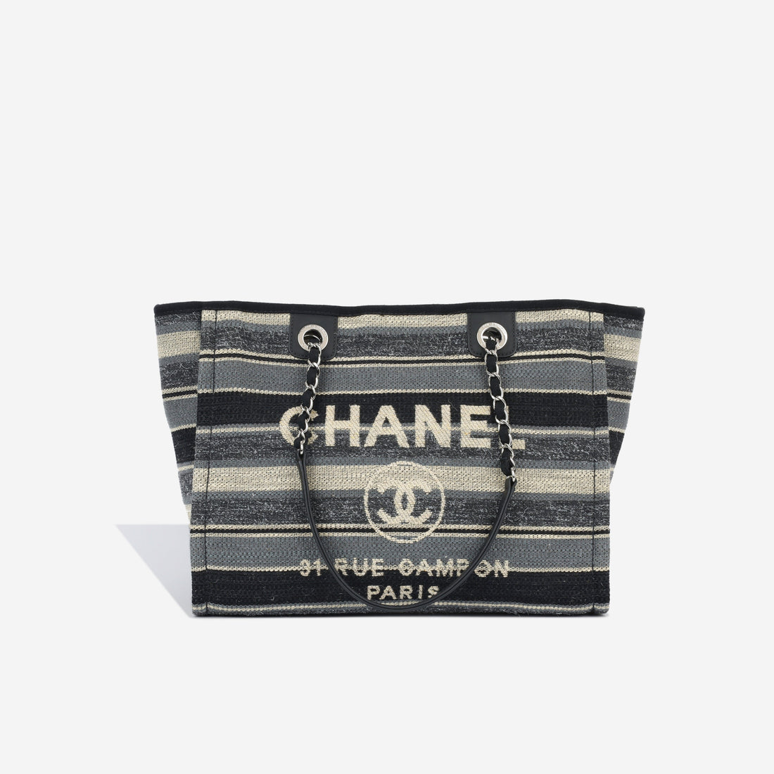 Carefully crafted from a variety of fabrics and textures, this Small Chanel Deauville tote bag...