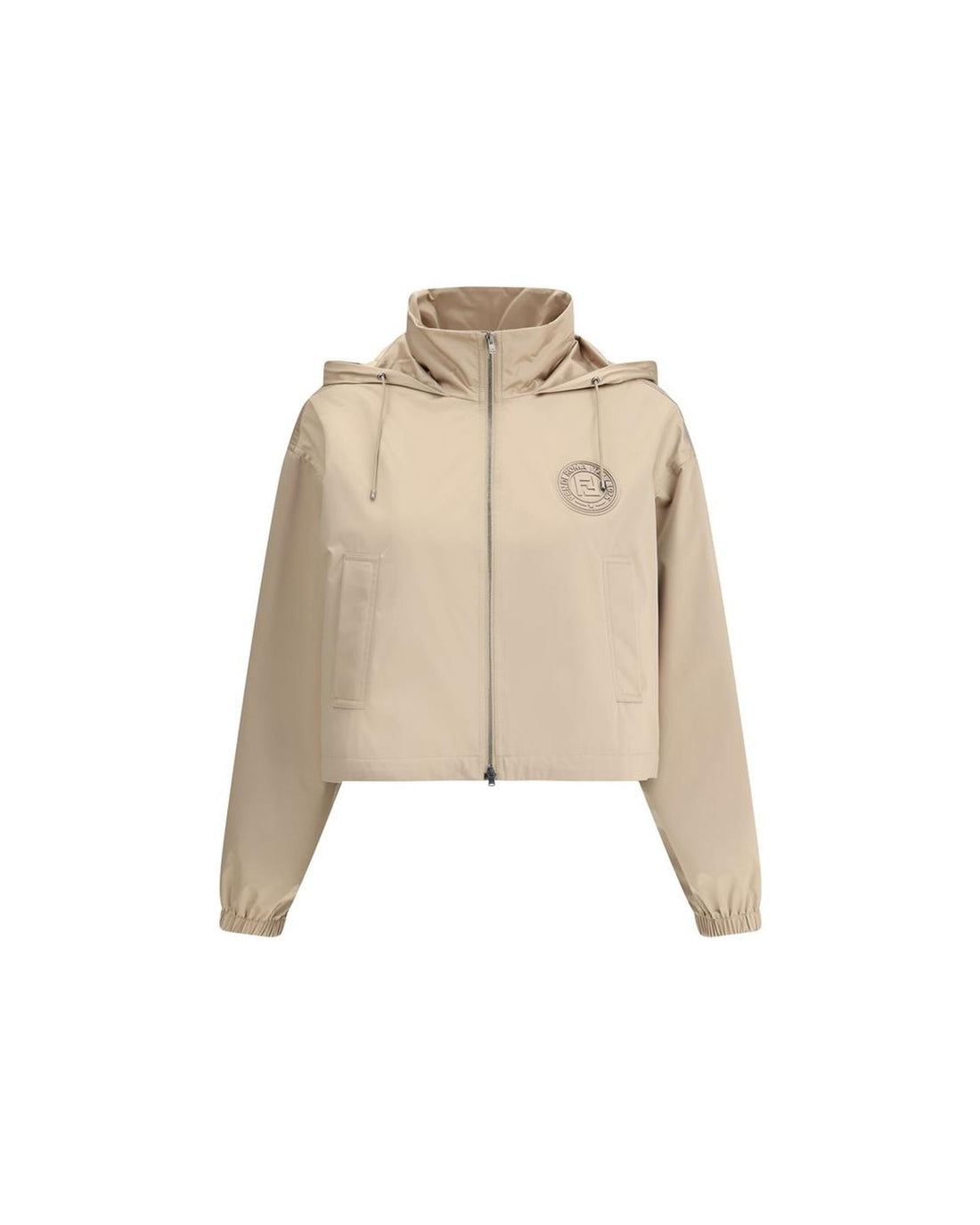 Fendi FF Logo Hooded Jacket Women Beige Coats