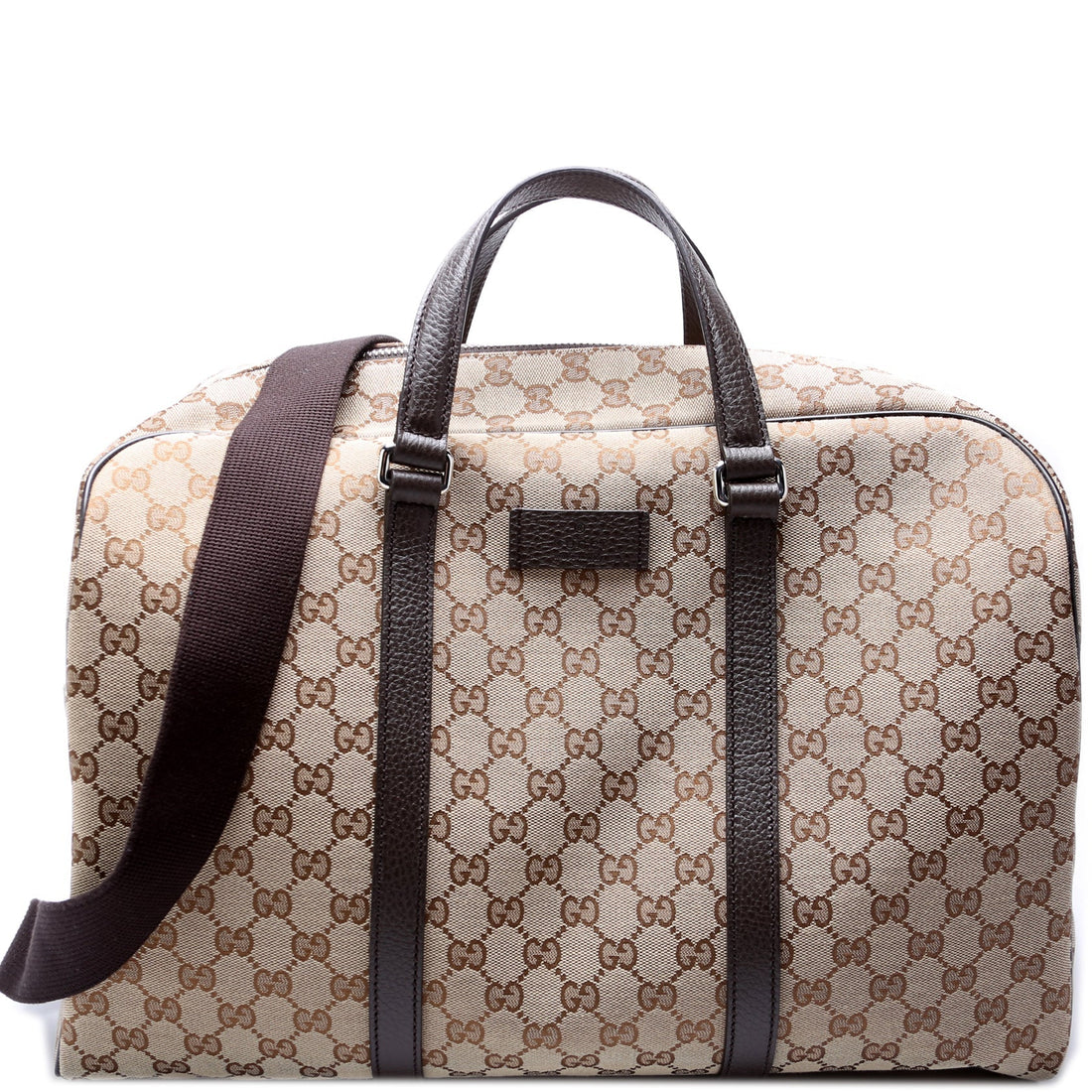 This Gucci GG Canvas Boston Duffle Bagis eye catching bag. The exterior is in the classic...