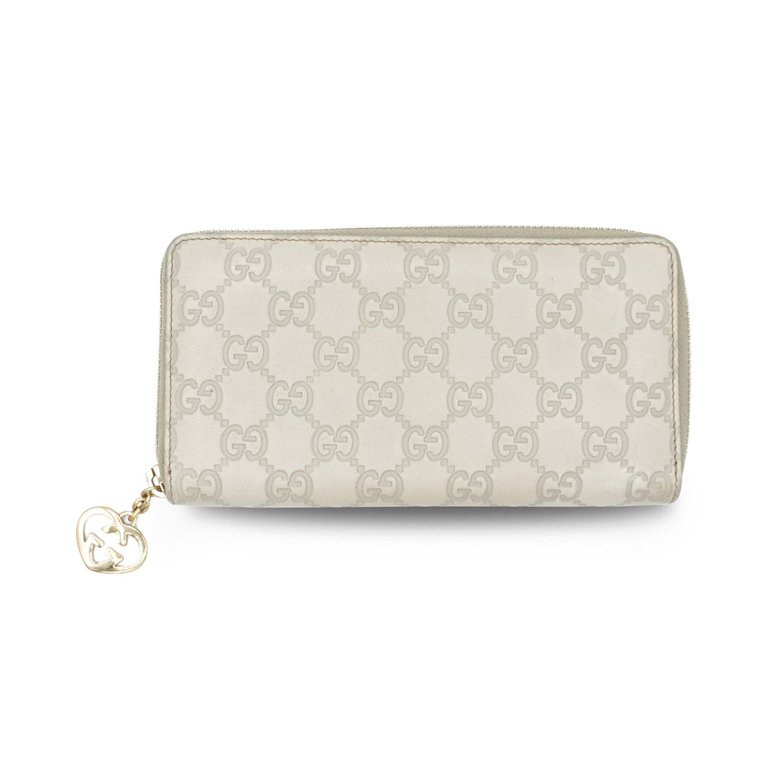 Gucci continental wallet in light beige Guccissima monogram embossed leather with soft gold heart-shaped interlocking...