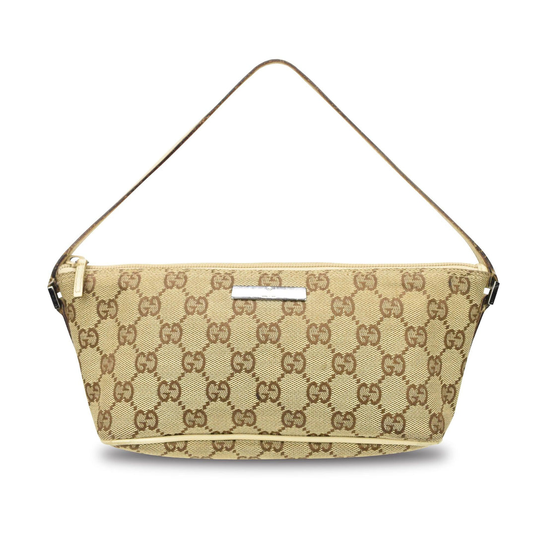 Gucci pochette shoulder bag in beige GG monogram printed canvas with cream leather trim and...