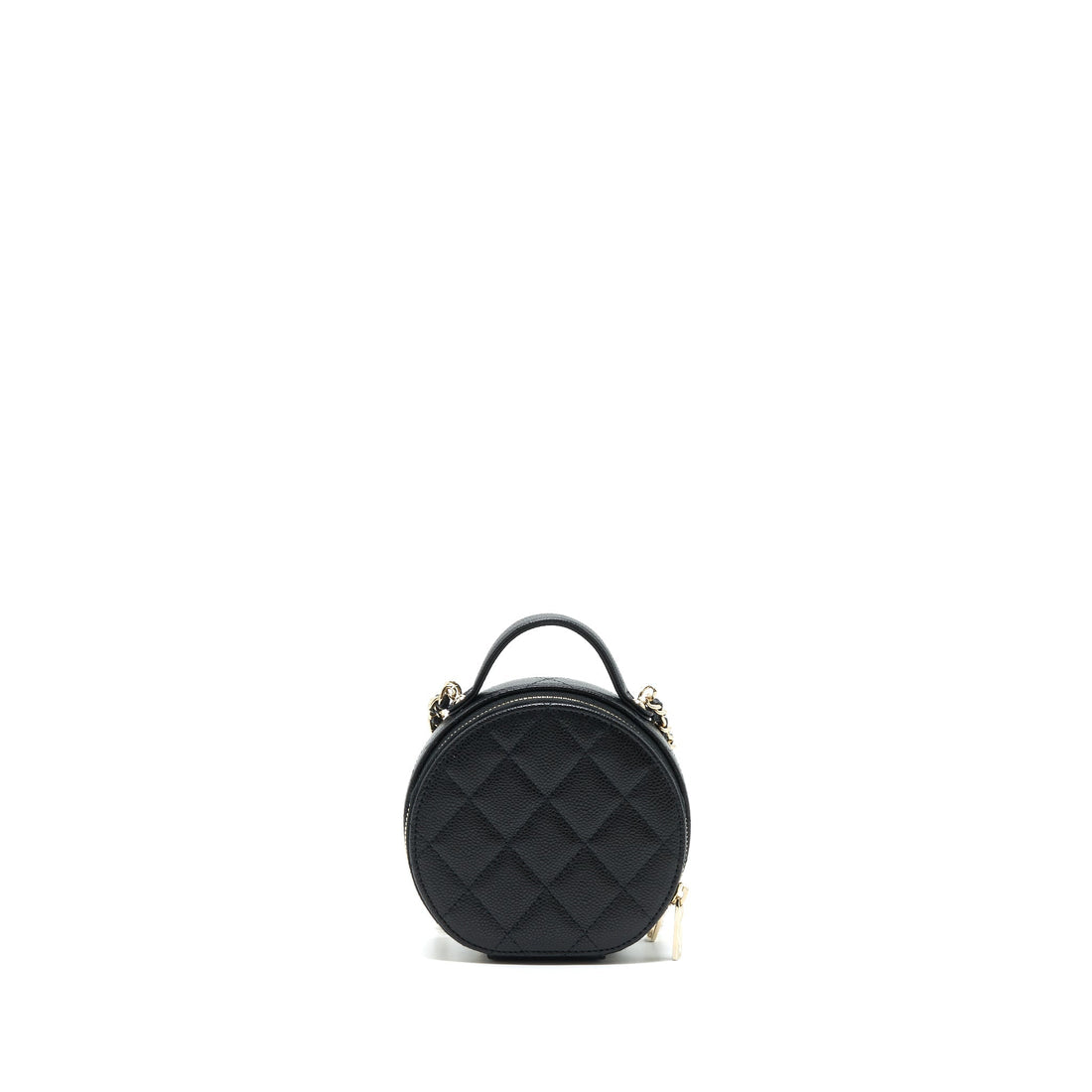 Chanel 22C Top Handle Mini Round Vanity On Chain Caviar Black LGHW