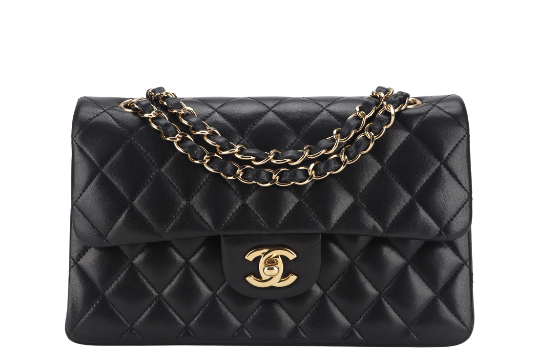 CHANEL CLASSIC FLAP SMALL BLACK LAMBSKIN & GOLD HARDWARE WITH (1547xxxx) WITH DUST COVER AND BOX