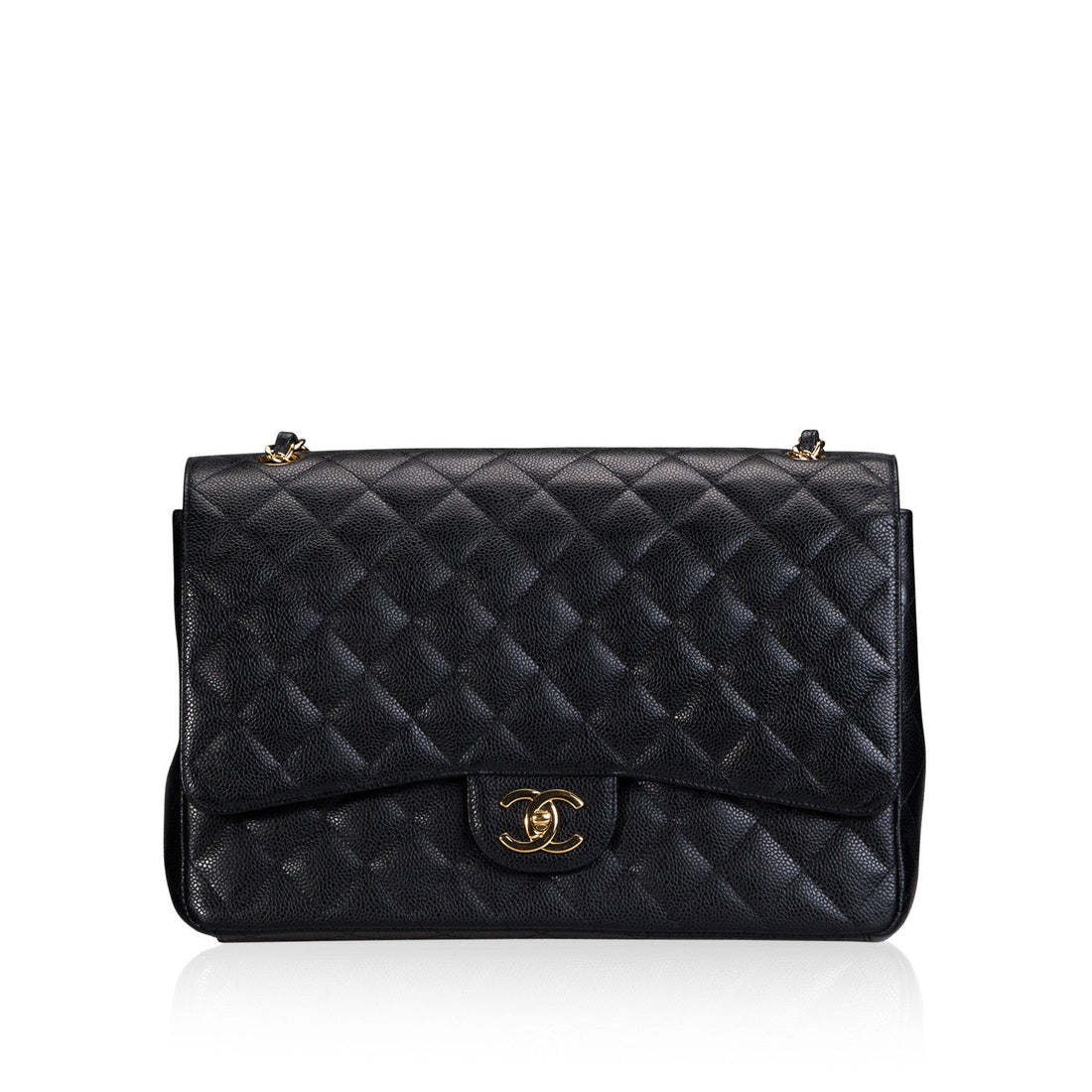 CHANEL CLASSIC FLAP JUMBO (2151xxxx) BLACK CAVIAR SILVER HARDWARE WITH & DUST COVER