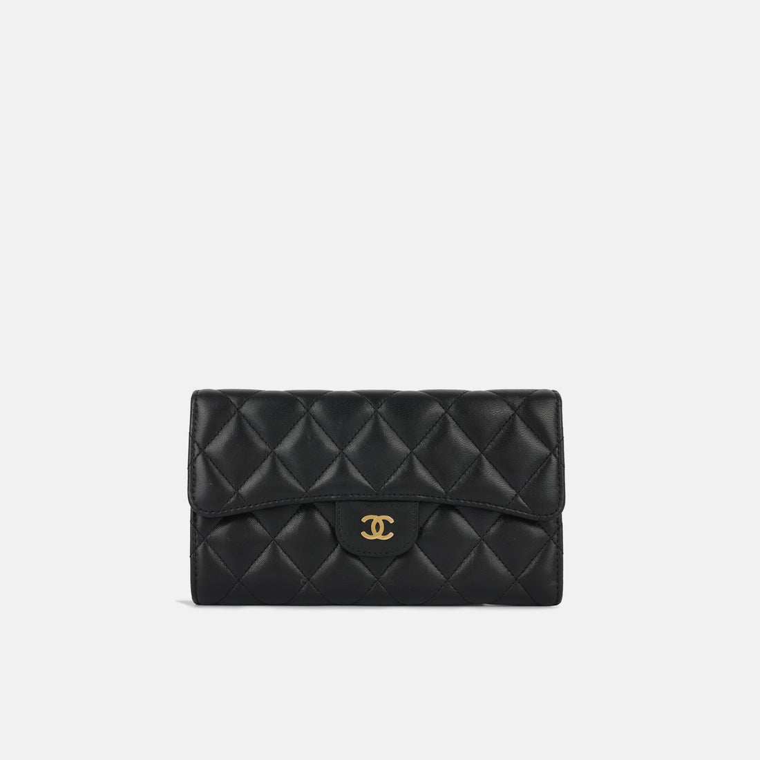 BRAND: CHANELMODEL: CLASSIC FLAP (1547xxxx)COLOR: BLACK & GOLDSIZE: D 6CM x H 14CM x W 23CM MATERIAL: LAMBSKIN...