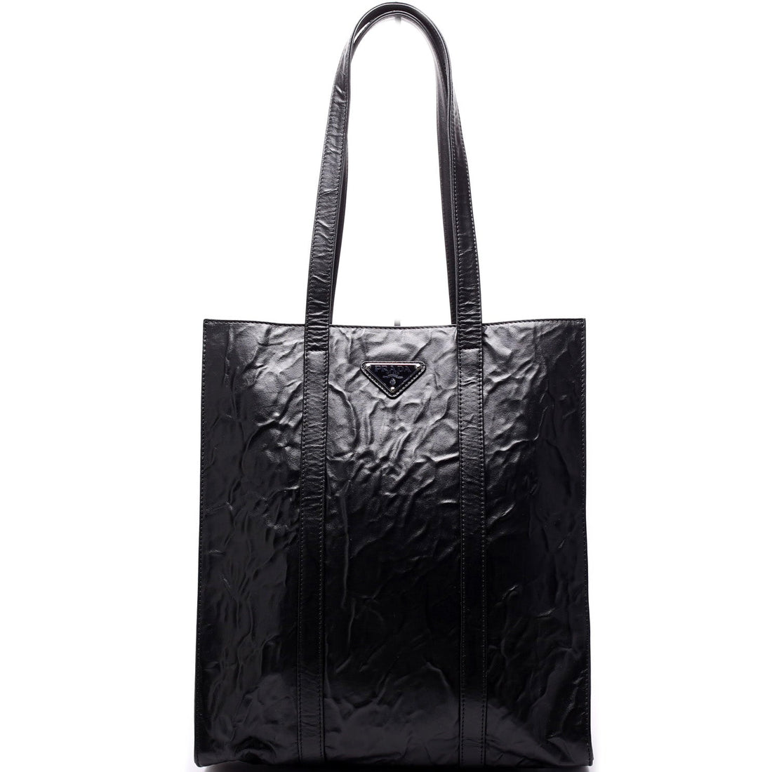 This Prada Antique Leather Tote is d 100% . Condition: Very Good Factory Tag: 7 Color: Black ...