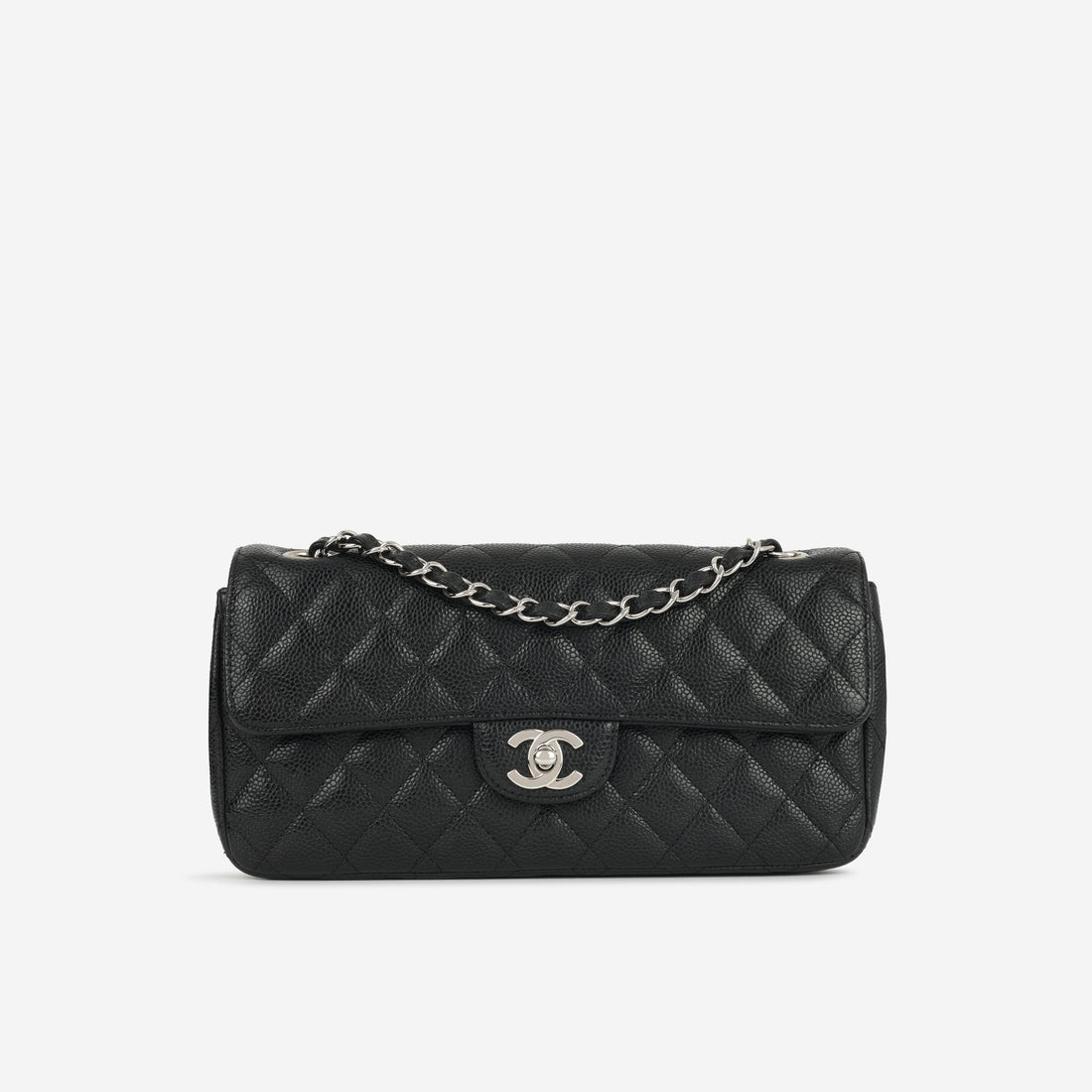 Chanel East West Flap Bag Black Caviar Silver Hardware