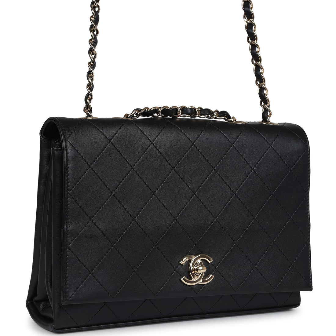 Chanel Flap Bag Black Calfskin Light Gold Hardware