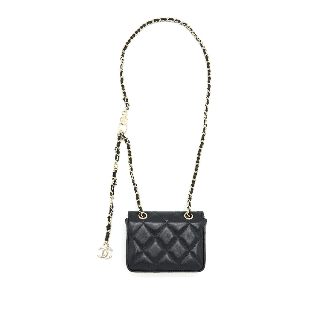 Chanel Flap Card Holder Belt Bag With Chain Lambskin Black LGHW