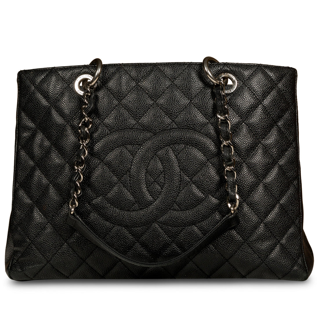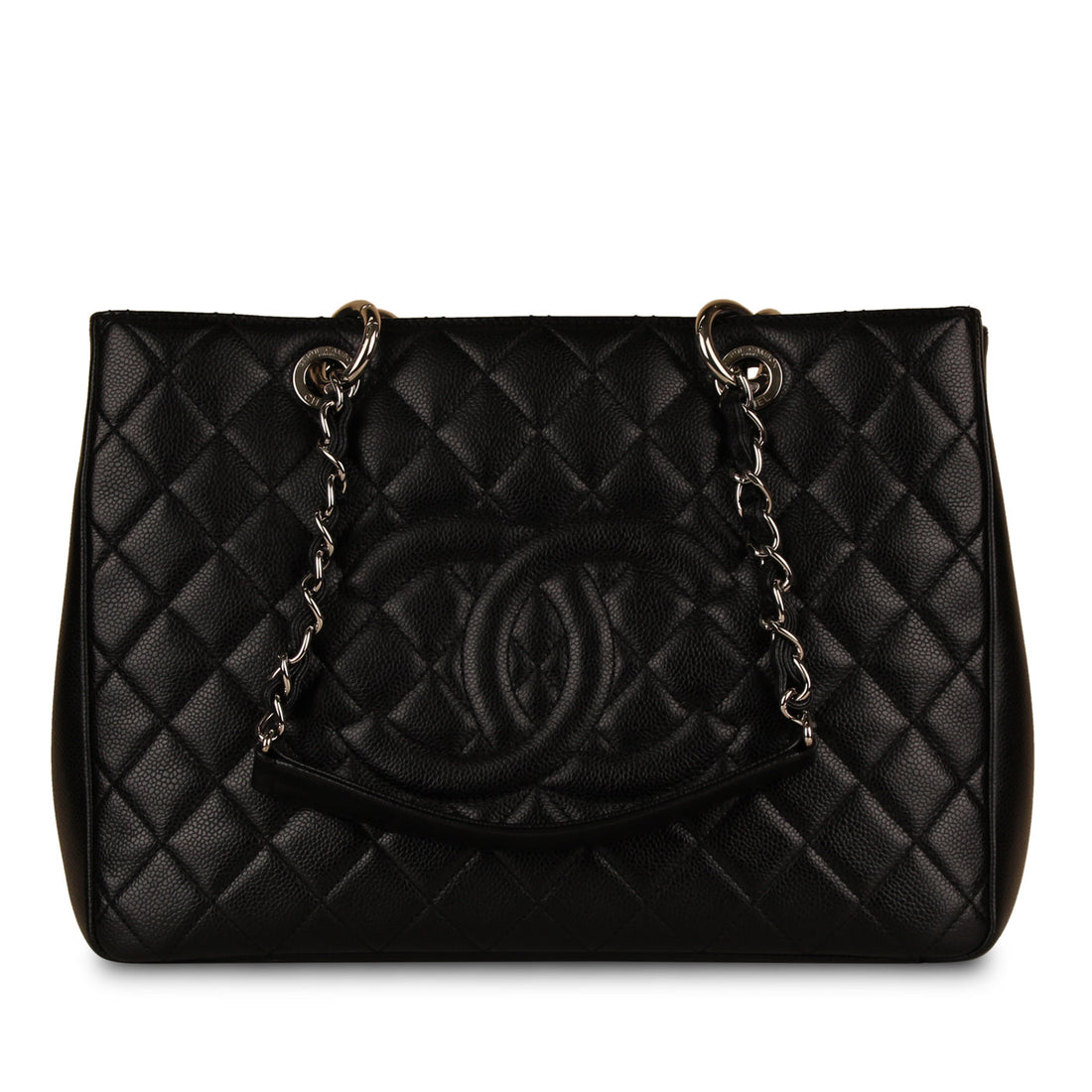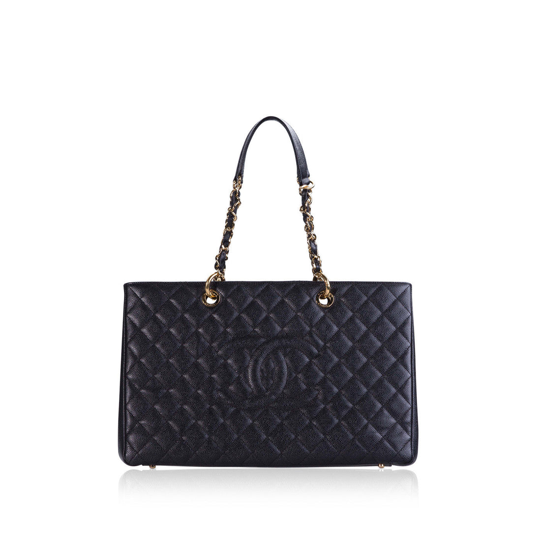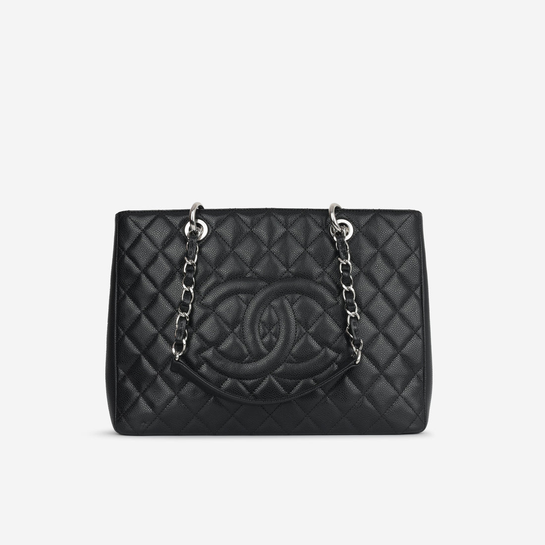 BRAND: CHANELMODEL: GST (2039xxxx)COLOR: BLACK & GOLDSIZE: D 12.5CM x H 25CM x W 34CMMATERIAL: CAVIAR LEATHER...