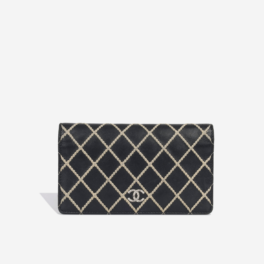 The beautiful flap wallet from Chanel features decorative stitching to replicate quilting, and showcases a...