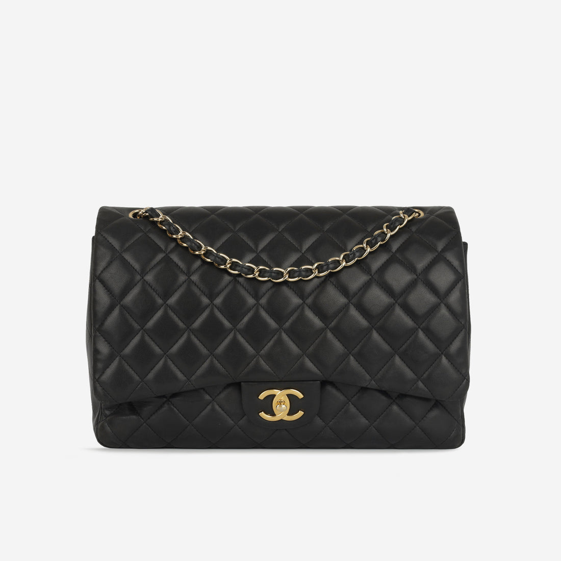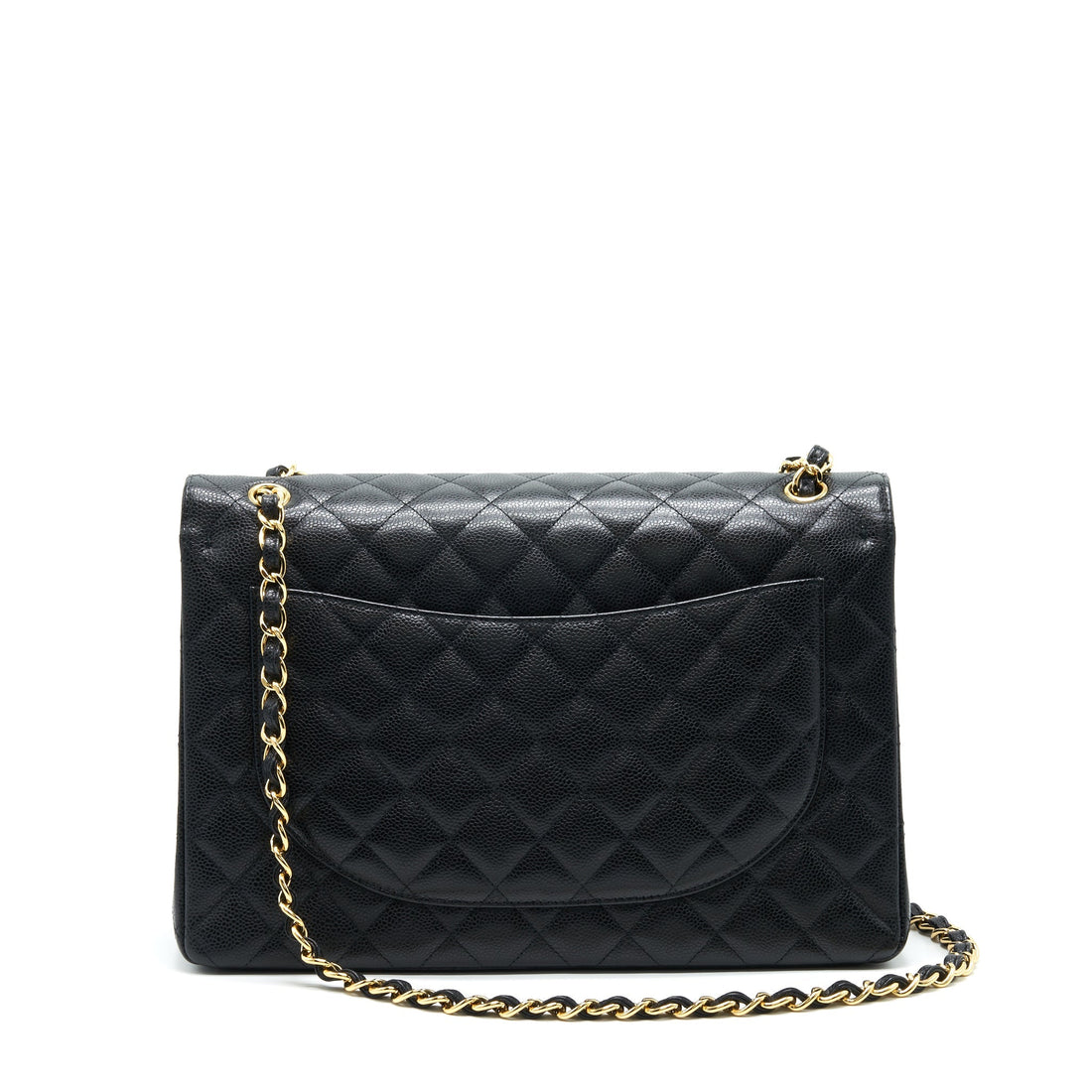 Chanel Maxi Classic Double Flap Bag Black Caviar Gold Hardware