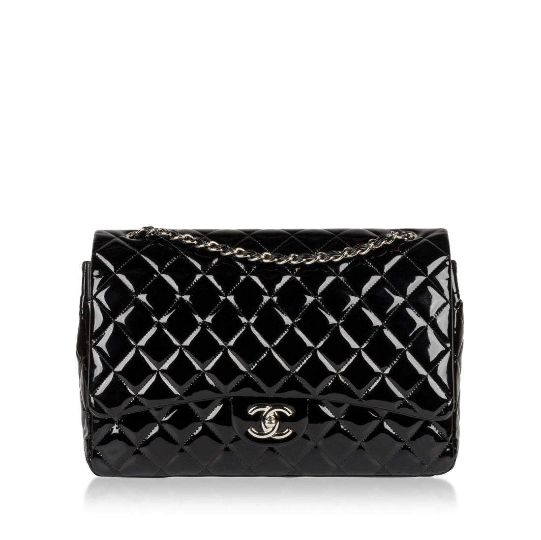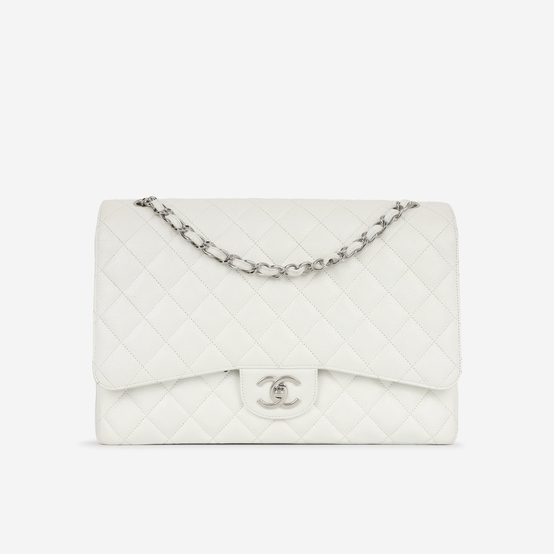 Chanel Maxi Classic Double Flap Bag Black Caviar Silver Hardware