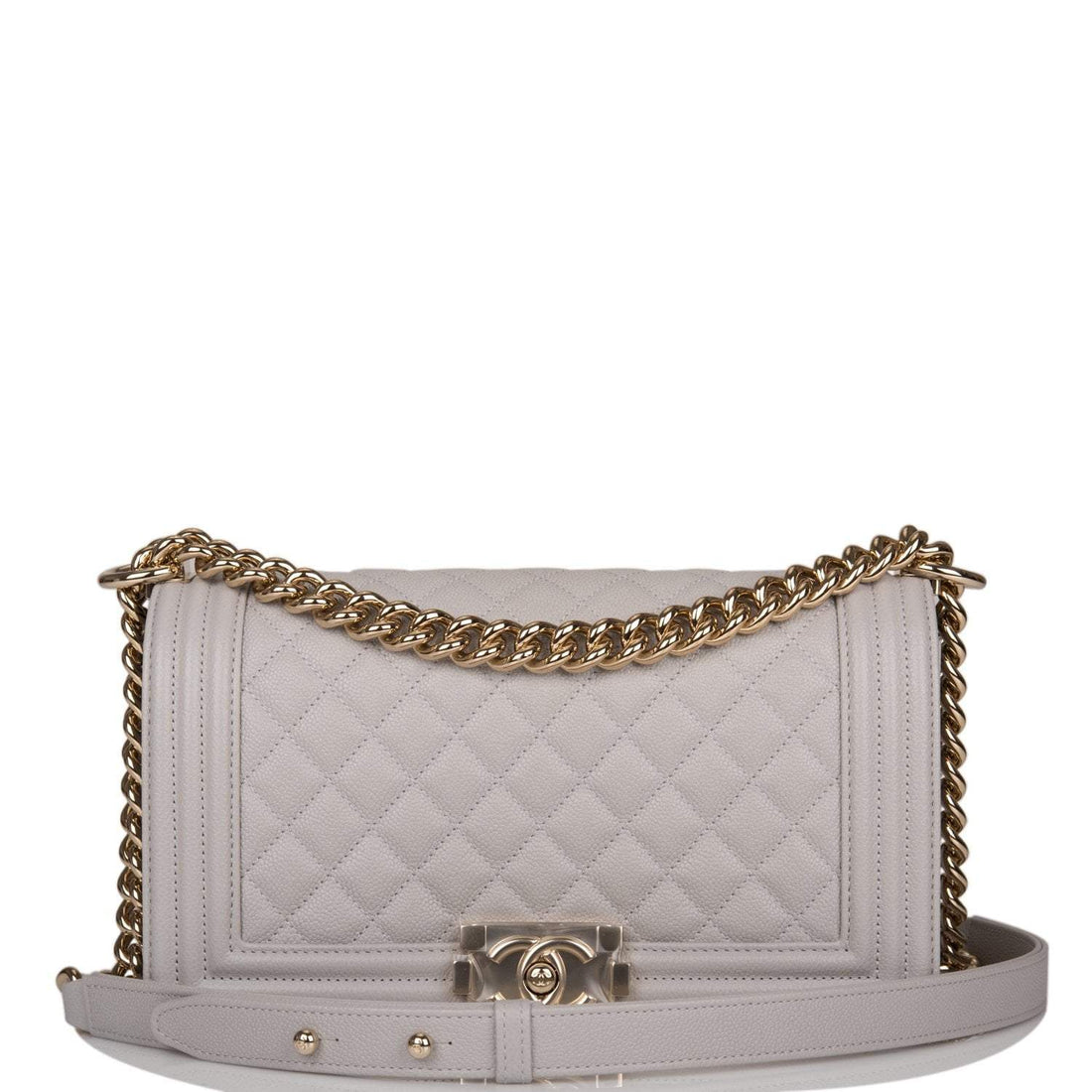 Chanel Medium Boy Bag Gray Quilted Caviar Light Gold Hardware