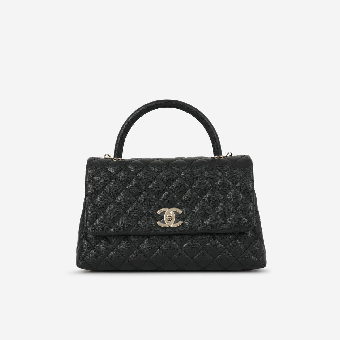 Chanel Medium Coco Handle Black Caviar Champagne Gold