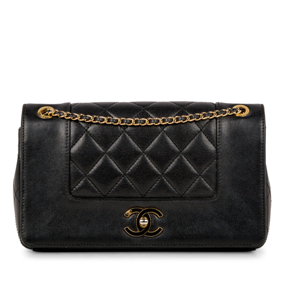 Chanel Pearl Chain Flap Bag Quilted Grained Lambskin Black LGHW