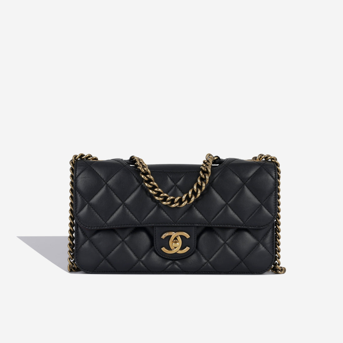 Chanel Pearl Detailed Edge Mini Flap Bag Lambskin Black LGHW (Microchip)