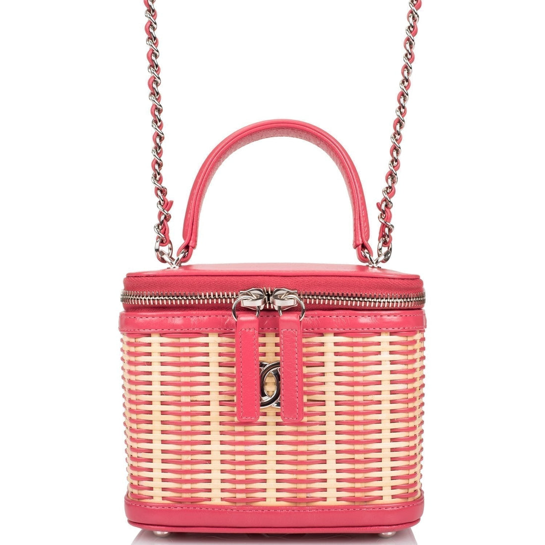 Chanel Pink Small Rattan Vanity Case Silver Hardware