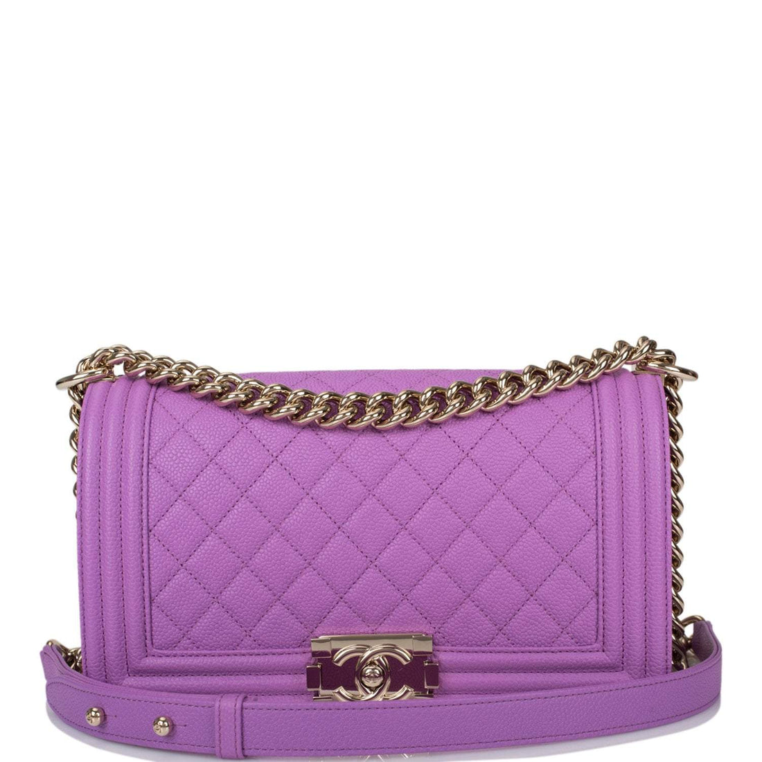 Chanel Purple Quilted Caviar Medium Boy Bag Light Gold Hardware